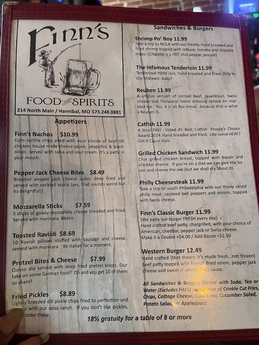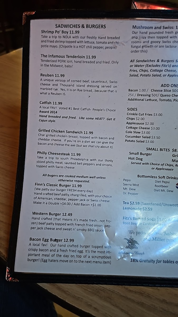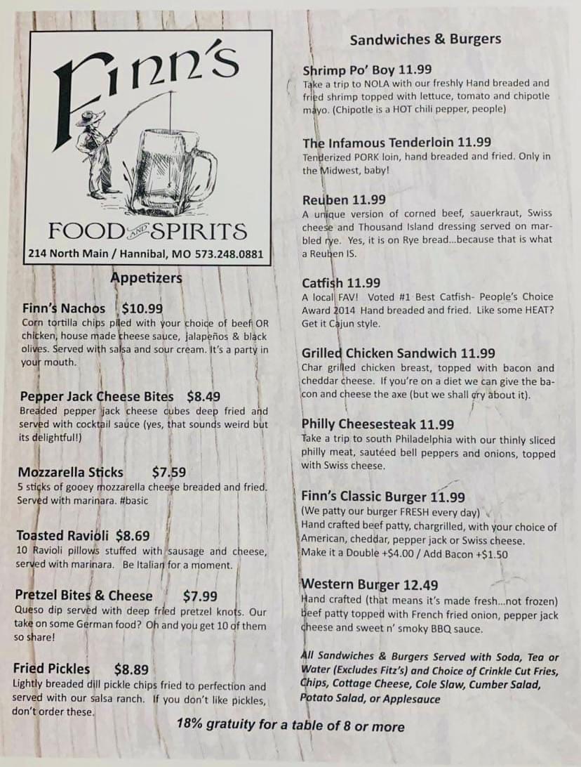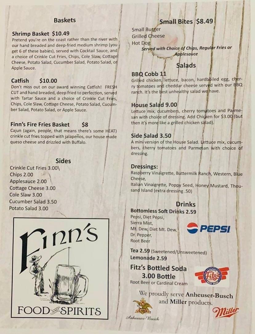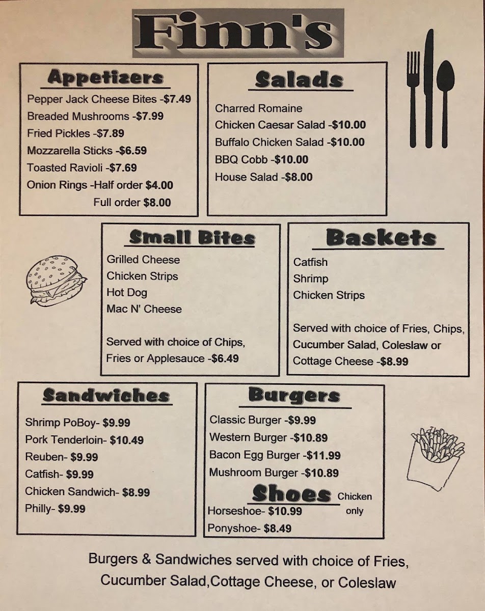 Finn's Food & Spirits offers a menu that blends classic bar & grill comfort with straightforward, satisfying options. The selection is well-suited for relaxed lunches, casual dinners, or unwinding over a laid-back evening drink. Expect familiar favorites like the Catfish Sandwich, Mushroom Swiss Burger, and the Philly Cheese Steak, alongside a variety of seafood baskets and hearty sides.